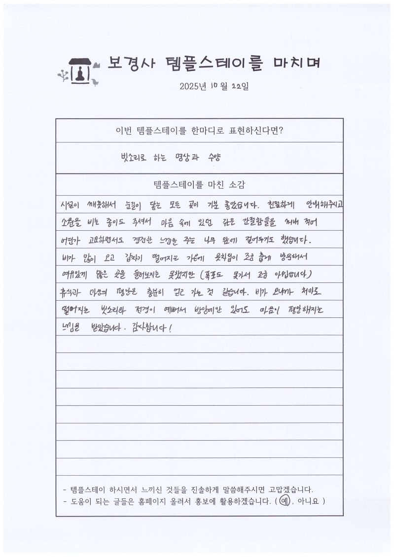 2025년 10월 '마음놀이 숨바꼭질' 선명상 템플스테이(18~19일)